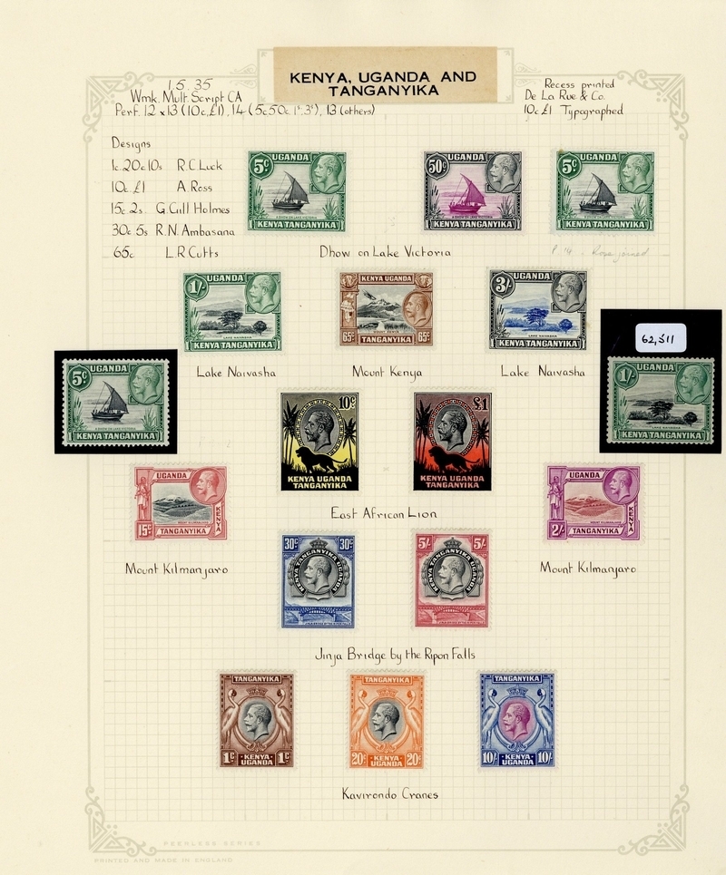 1935-37 1c. to £1 set of fourteen with additional 5c. perf. 14 and perf. 13x12 Rope joined to sail, 1/- perf. 13x12 and 1935 Silver Jubilee set; the perf. 13x12 5c. and 1/- both regummed, the others good to fine mint. B.P.A. Certificate (2005) for perf. 13x12 1/-. S.G. 110-127, 111a, 11ba, 118a