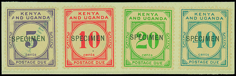 1928 5c., 10c., 20c. and 40c., each overprinted "specimen", the 5c. additionally handstamped "specimen" in violet and all four stamps affixed to a single piece from an unknown Receiving Authority. Photo