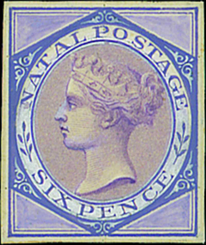 6d. composite essay in close to the issued design, stamp-size on card initialled "AMD" on reverse, the head and background printed, the remainder of the design handpainted in shades of lilac with portions of the oval surround completed in Chinese white. Unique and highly attractive. Photo
