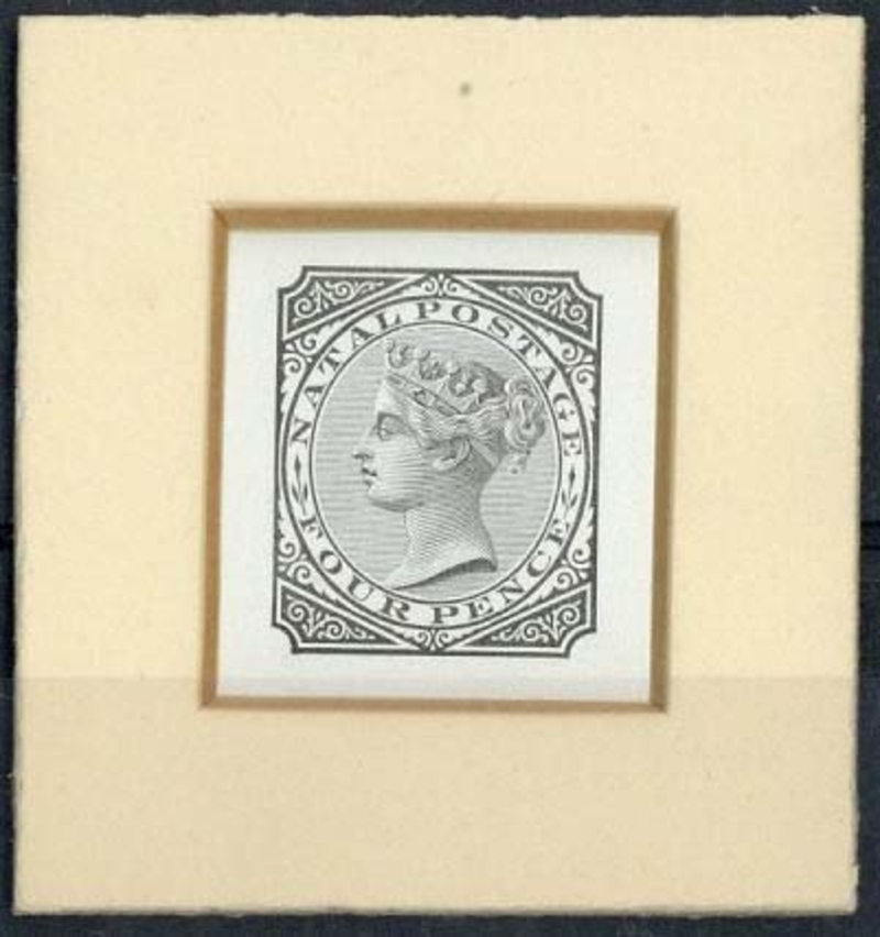 4d. in black on glazed card (44x46mm.), affixed behind framed card; fine