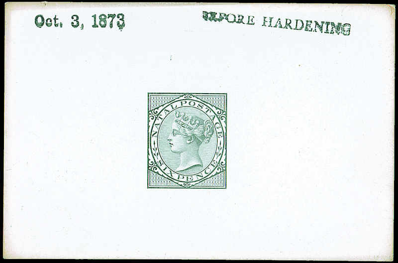 6d. in black on glazed card (92x60mm.), dated "Oct. 3, 1873"; trivial edge marks. Photo
