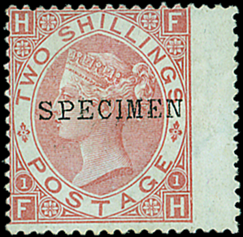 — 2/- brown, FH with wing margin at right, overprinted "specimen" type 9, large part original gum with old hinge remainder; fresh and fine. S.G. Spec. J120s, £3800. Photo