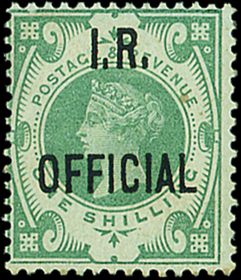 — 1887-92 1/- grey-green, part original gum; pencil signatures on the reverse, fresh. S.G. O15, £900. Photo