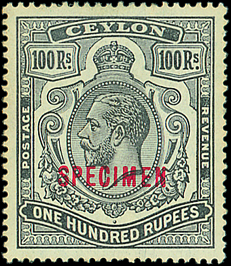 1912-25 100r. grey-black overprinted "specimen" (Type D12), a fraction gum toned otherwise fine. S.G. 321s, £325