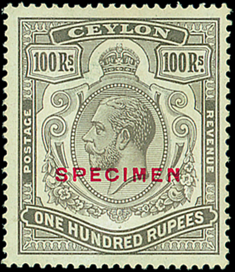 — 100r. brownish grey overprinted "specimen" (Type D16), gum a fraction toned otherwise fine. S.G. 359s, £400. Photo