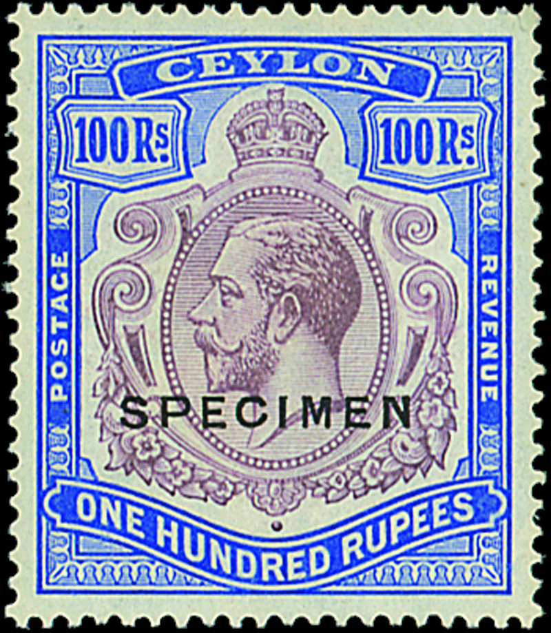 — 100r. dull purple and blue overprinted "specimen" (Type D16); a fraction gum toned, otherwise fine mint. S.G. 360s, £375. Photo