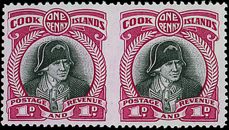1932 no watermark, 1d. black and lake horizontal pair, variety imperforate between, fine unmounted mint. Photo