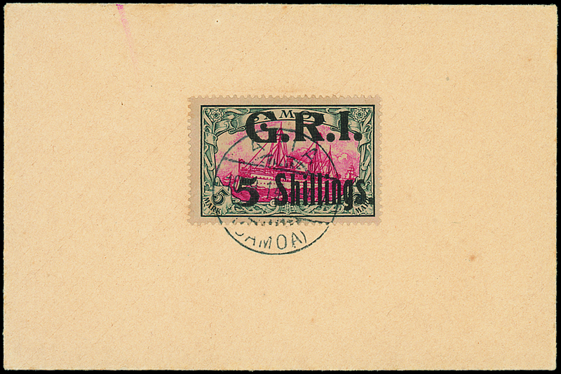 — 5s. on 5m. carmine and black, neatly tied by Apia c.d.s. in centre of unaddressed envelope, fine. P.F. Certificate (1985). S.G. 114, £1000. Photo