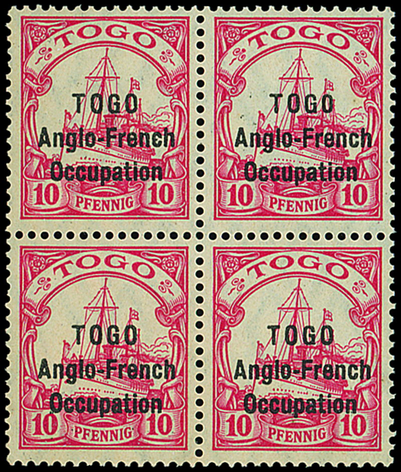 1915 (Jan.) Sansane-Mangu overprint, 10pf. carmine block of four, fine mint. S.G. H31, £800. Photo