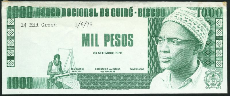 (x) Banco Nacional da Guine-Bissau, 1,000 Pesos, green, a group of eight uniface progressive proofs; obverse (4) and reverse (4), 1978, Cabral at right