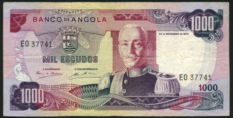 (x) Banco de Angola, a set of the 1972/1973 issue comprising 20,50,100,500,1000 escudos, all 1972, M.Carmona at right and 20,50,100,500 and 1000 escudos, 1973, all Luiz De Camoes at right