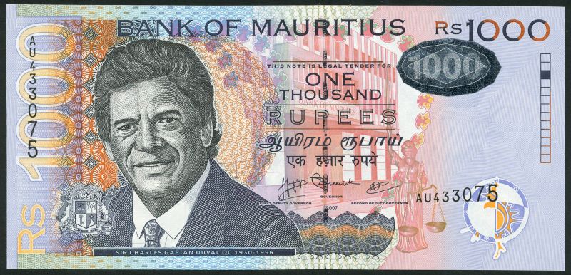 (x) Bank of Mauritius, 25,1999, 50,1999, 100 (2) 1999/2001, 200 (2) 1999/2001,500, 1999 1000 rupees, 1999, 2000 rupees, 1999, also 100 and 200 rupees, 2004/2007 and 500 and 1000 rupees, 2007