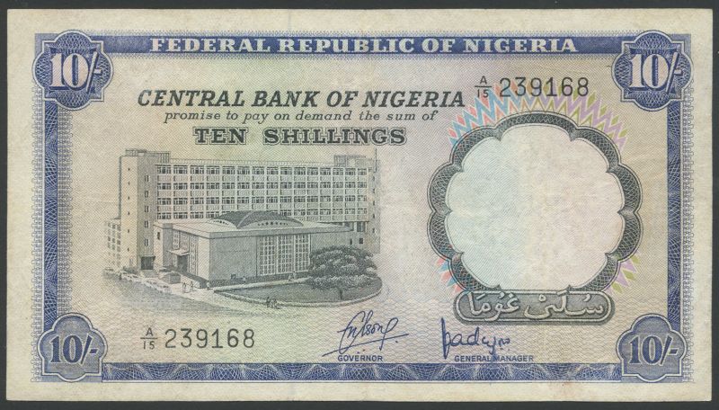 (x) Federal Republic of Nigeria, 5 shillings, green, 10 shillings, blue and £1 (2), red-pink, all ND (1967-1968), all bank building at centre
