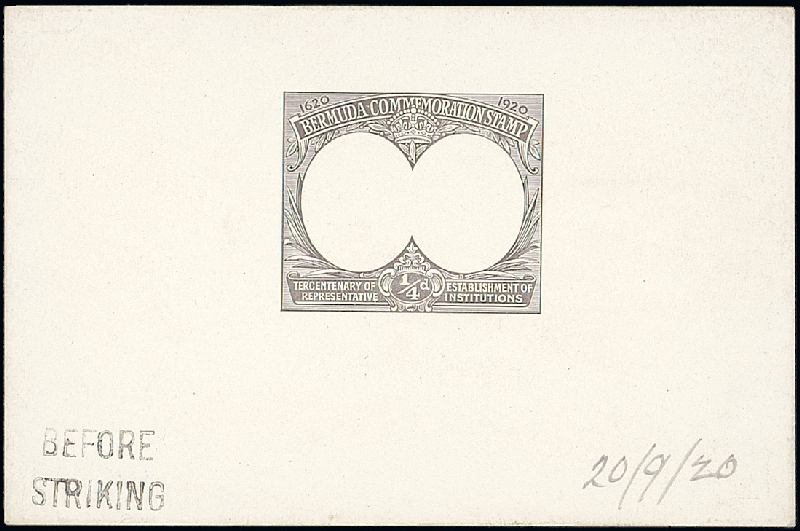 ¼d. frame in black on glazed card (92x60mm.), marked "before striking" and dated "20/9/20"; fine. Photo