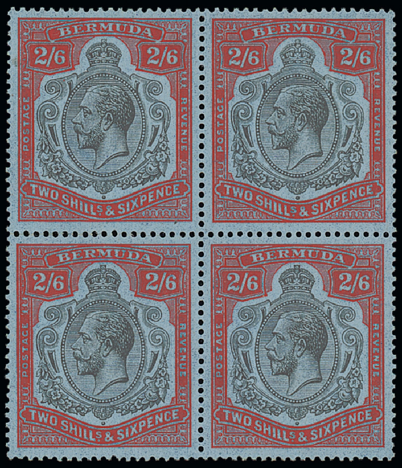 2/6d. black and scarlet-vermilion on deep blue, 9th. printing (September 1931), block of four, [5-18], with 5A, fresh unmounted mint; perfs. split between [5] and [17], otherwise fine