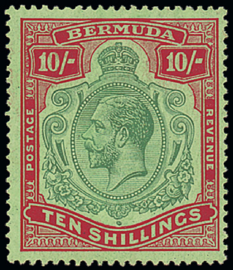 10/- deep green and deep red on pale yellow-green, 4th. printing (August 1926), HPF12A, C, D, fresh mint; light diagonal gum bend. Photo
