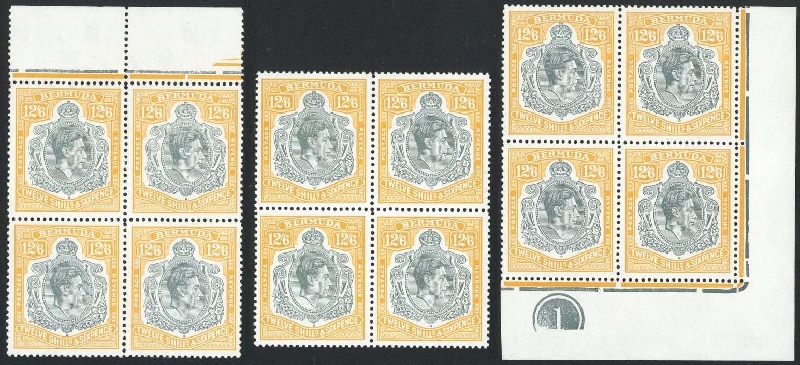 Blocks of four comprising [5-8] marginal, [37-50] and [47-60] with plate number, various flaws and with minor shade variations, fresh mint with the first and last unmounted