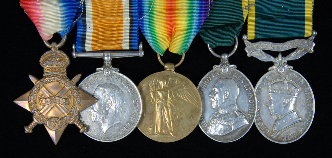 1914-15 Star (3107 Pte. A. Neal. Leic: R.); British War and Victory Medals (3107 Pte. A. Neal. Leic. R.); Territorial Efficiency Medal, G.V.R. (4848076 Pte. A. Neal. 5-Leic. R.); Efficiency Medal, G.VI.R., with 'Territorial' scroll suspension (4848076 Pte. A. Neal. 5-Leic. R.), light pitting from star, very fine or better (5)