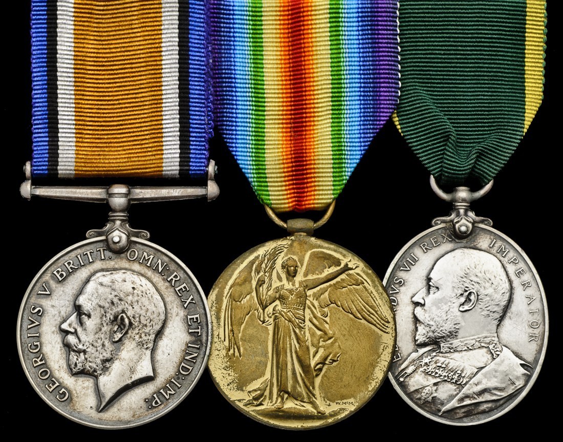 British War and Victory Medals (432 Pte. D. Pegg. Leic. R.); Territorial Force Efficiency Medal, E.VII.R. (432. Pte. D. Pegg. 5/Leic: Regt.), edge bruise to last, otherwise nearly extremely fine (3)