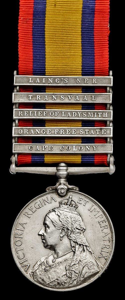 Queen's South Africa 1899-1902, five clasps, Cape Colony, Orange Free State, Relief of Ladysmith, Transvaal, Laing's Nek (Lieut: N.G.P.deC. Tronson. Leicester: Regt.), good very fine