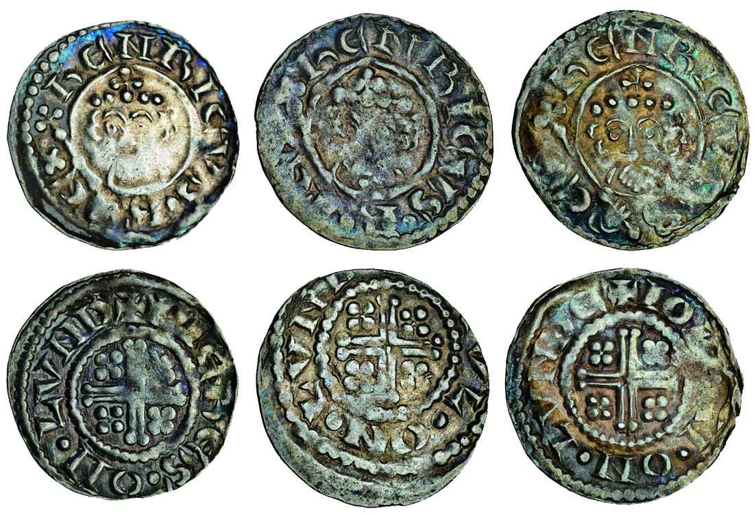 Henry II, short cross coinage, 1180-89, Pennies, class 1b, London (4), 1.44g, Pieres, +pieres.on.lvnd, weak on face, good fine, 1.38g, Iohan, +iohan.on.lvnde, fine, 1.39g, 1.37g, Raul, +ravl.on.lvnd (N.963; S.1344), fine (4)