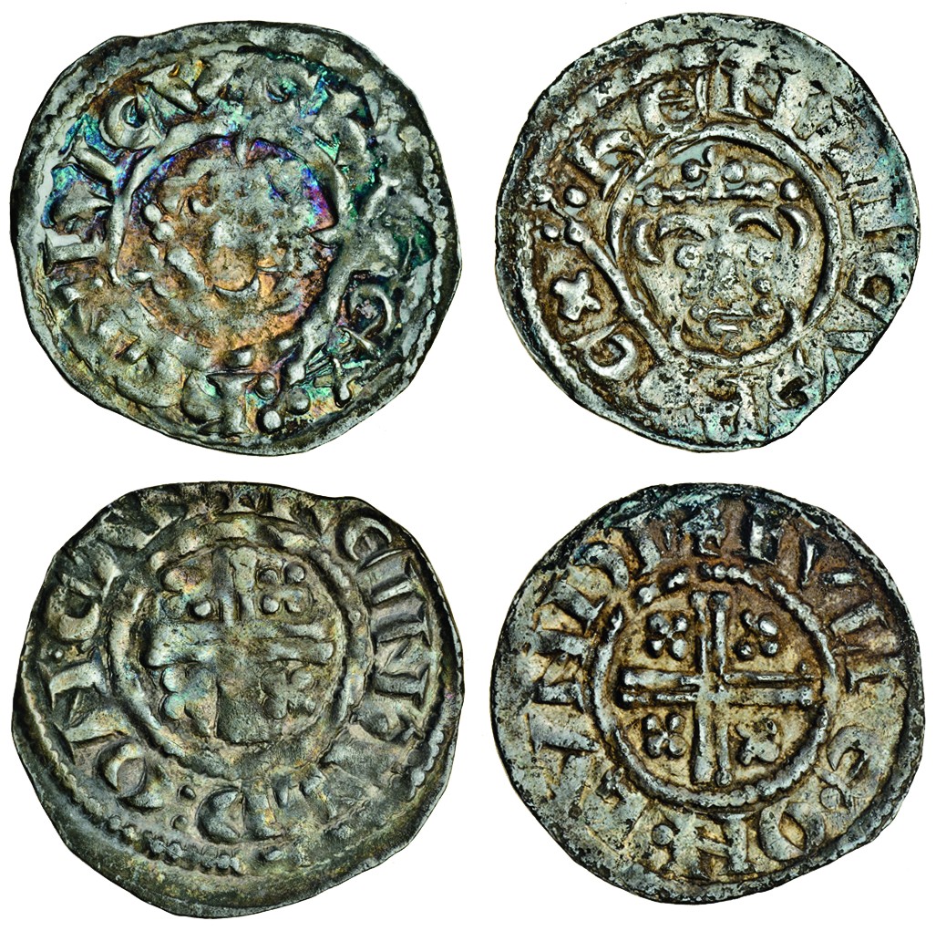 Richard I (1189-99), Pennies (2), 1.42g, class 2, Canterbury, Reinald, +reinald:on:can, fine, 1.39g, class 4b, London, Fulke, +fvlke.on.lvndi, fine (2)