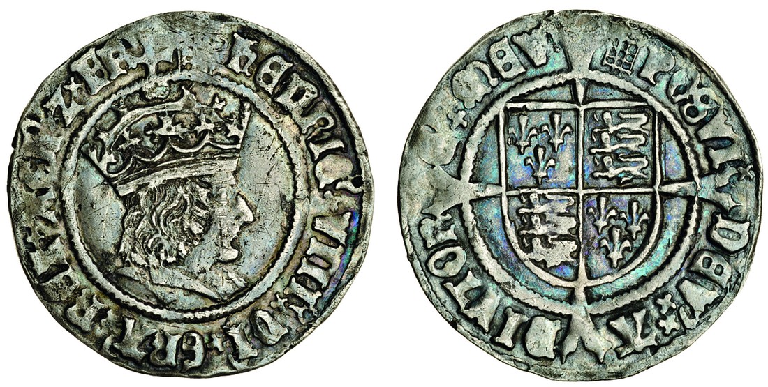 Henry VIII, first coinage 1509-26, Groat, 3.17g, m.m. crowned portcullis with chains / crowned portcullis without chains, crowned bust right, rev. shield over long cross fourchée (N.1762; S.2316), scuffs, nearly very fine