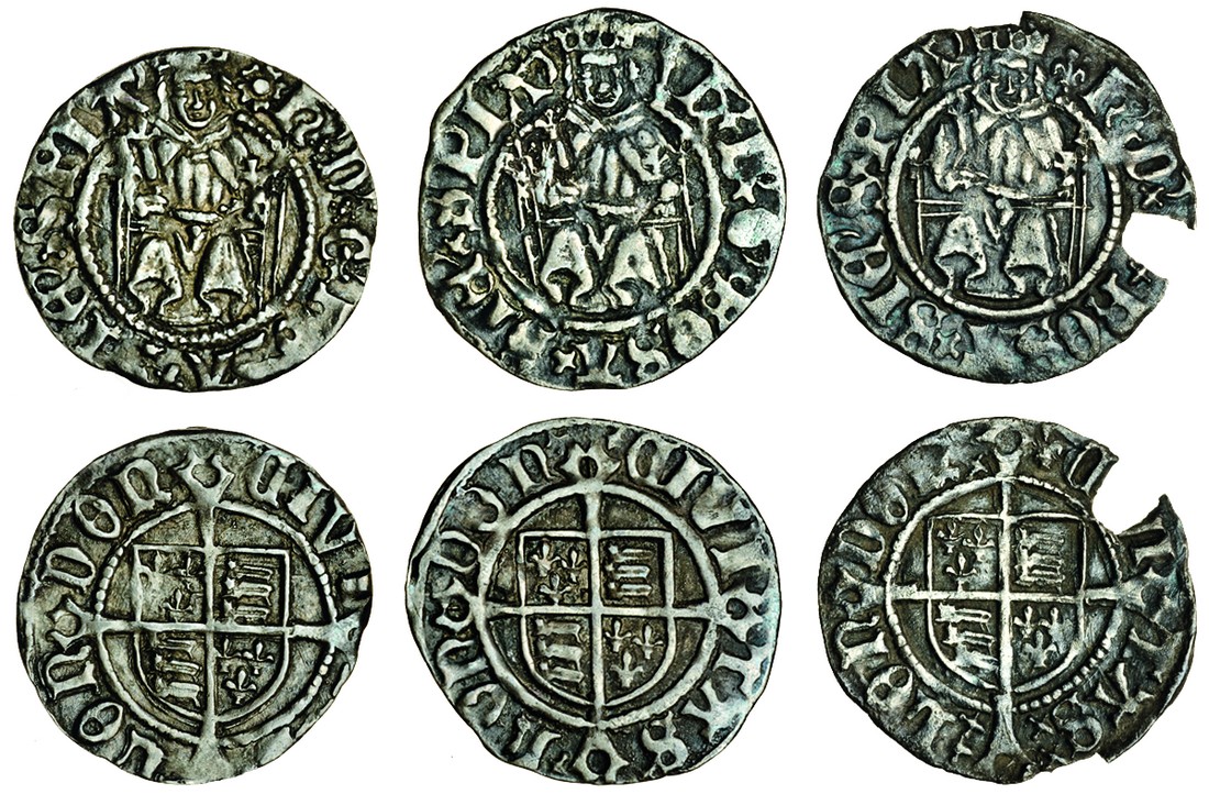 Henry VIII, second coinage, 1526-44, Pennies, sovereign type, London (3), 0.66g, m.m. rose, king crowned seated facing, rev. shield over long cross fourchée (N.1808; S.2349), reverse off-centre, nearly very fine 0.60g, m.m. arrow, similar, nearly very fine, 0.54g, m.m. lis, similar, edge chip, very fine (3)