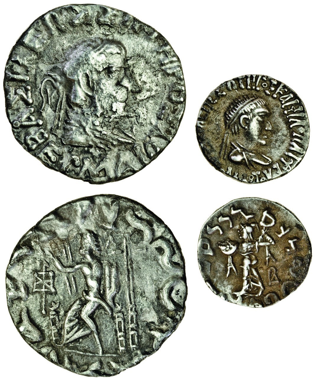 Kingdom of Bactria (2), Hermaios (c.105-90 BC), AR Tetradrachm, posthumous issue, c.70-50 BC, diademed and draped bust right, rev. Zeus enthroned three-quarters left, right hand raised, control mark on left (SNG ANS 1393), corrosion on obverse, about very fine, Apollodotos II (c.80-65 BC), bilingual Drachm, diademed and draped bust right, rev. Athena Alkidemos walking left, holding shield and hurling thunderbolt, very fine (2)