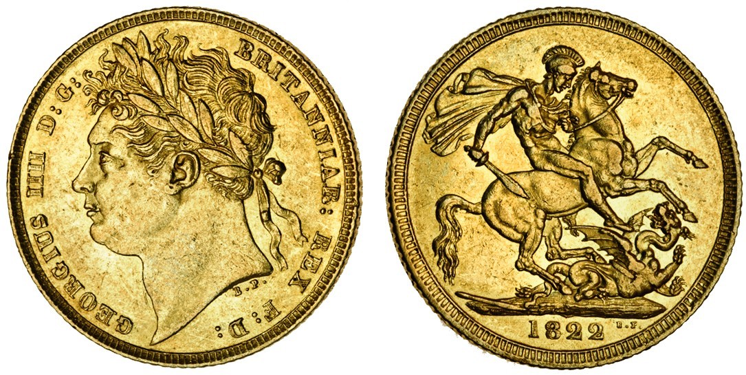 (g) George IV (1820-30), Sovereign, 1822, laureate head left, rev. St George and dragon (Marsh 6; S.3800), some brilliance, good very fine
