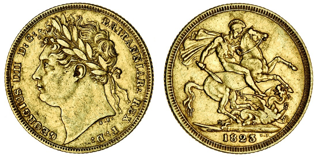 (g) George IV (1820-30), Sovereign, 1823, laureate head left, rev. St George and dragon (Marsh 7; S.3800), cleaned, about very fine, rare