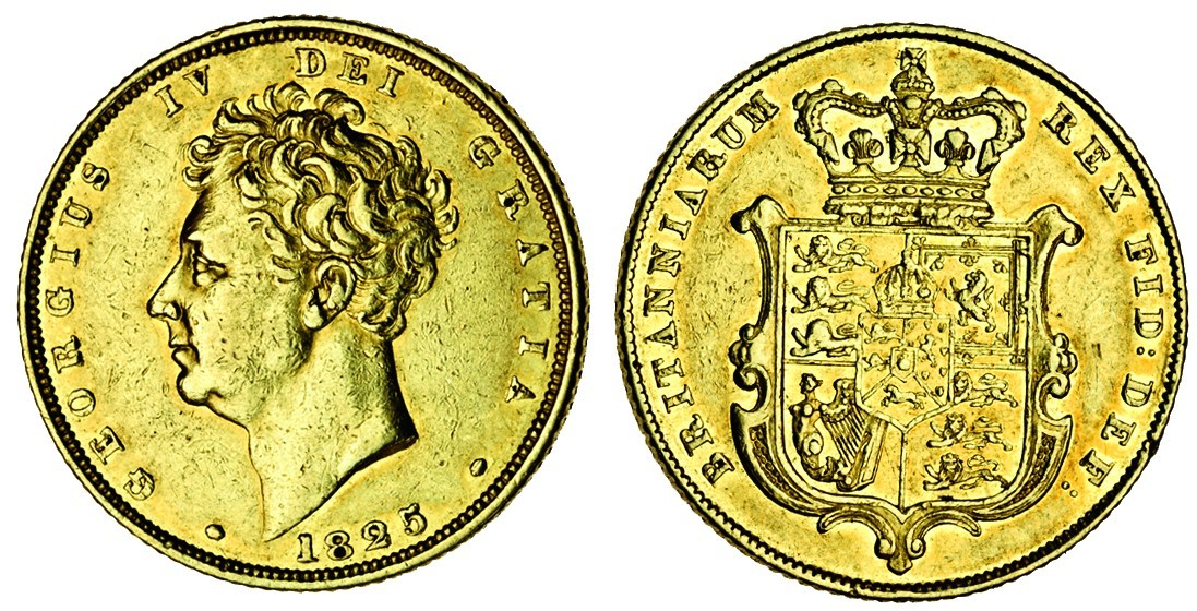 George IV (1820-30), Sovereign, 1825, bare head left, rev. crowned garnished shield (Marsh 10; S.3801), edge knock at 4 o'clock, very fine