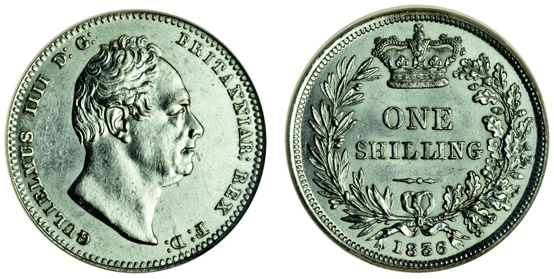 William IV (1830-37), Shilling, 1836, head right, rev. value within wreath (ESC 1273; S.3835), in CGS UK holder graded EF60
