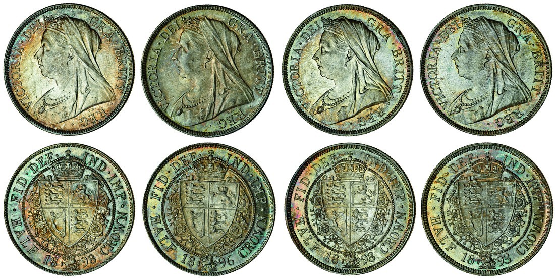 Victoria (1837-1901), old head, Halfcrowns (4), 1893 (2), 1896, 1898 (ESC 726, 730, 732; S.3938), toned, some with brilliance, good extremely fine (4)