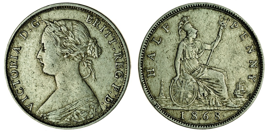 Victoria (1837-1901), proof 'bun' head Halfpenny, in cupro-nickel, 1868, 5.60g, rev. Britannia seated right, dies 7+G (F.304; Peck 1794), very fine, very rare