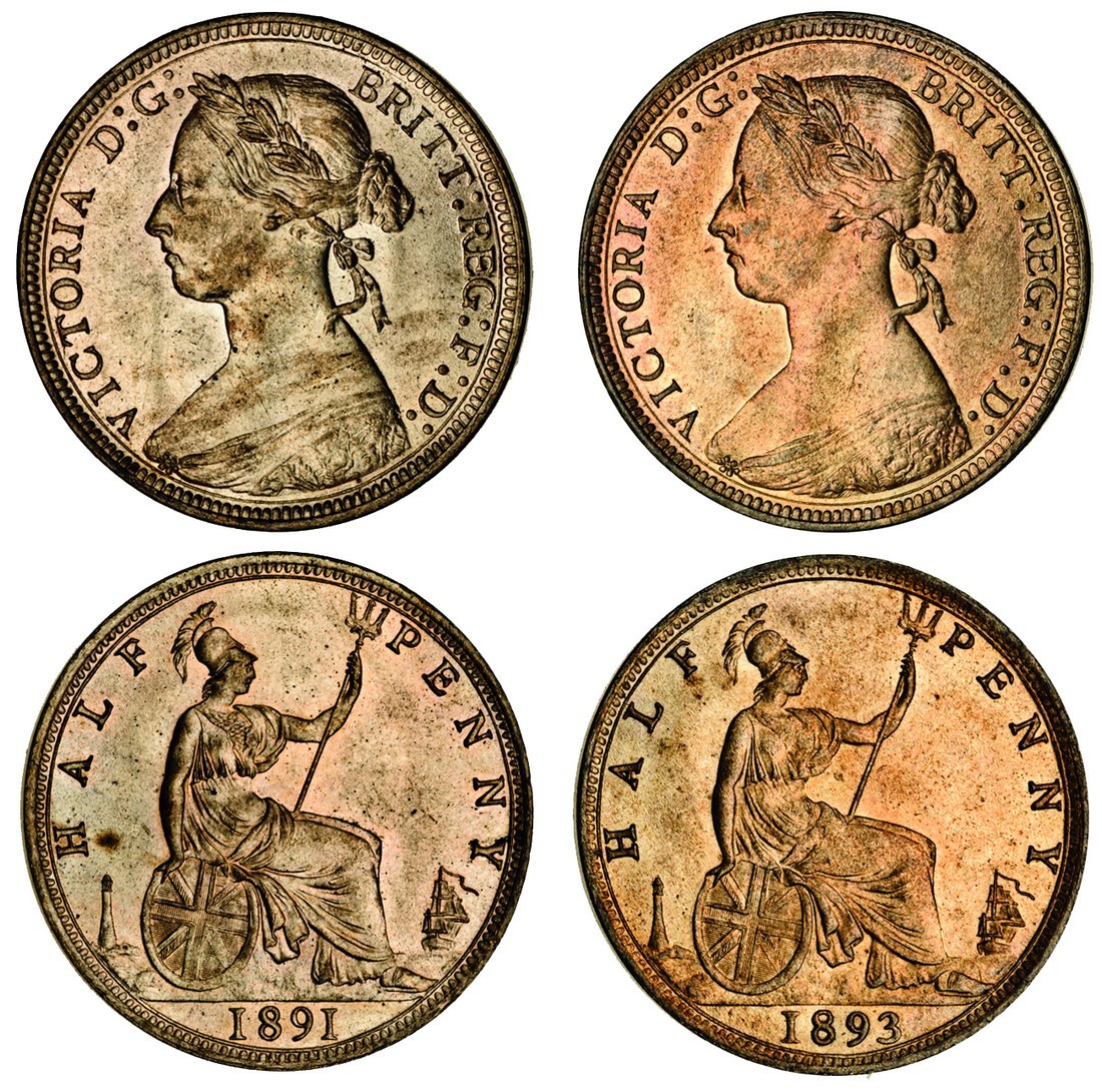 Victoria (1837-1901), 'bun' head Halfpennies (16), 1881H dies 16+Q, h touches linear circle, 1882H dies 19+S, 1883 dies 15+S, 1883 dies 17+S, 1884 dies 17+S, 1885 17+S, 1886 dies 17+S, 1887 17+S, 1888 dies 17+S, 1889 dies 17+S (2), 1890 dies 17+S, 1891 dies 17+S, 1892 dies 17+S, 1893 dies 17+S, 1894 dies 17+S, rev. Britannia seated right (F.344, 347, 348, 349, 352, 354, 356, 358, 359, 360, 362, 364, 366, 368, 369; S.3956, 3957), some lustrous, carbon spots, 1883 poor, rest generally good very fine to about uncirculated (16)