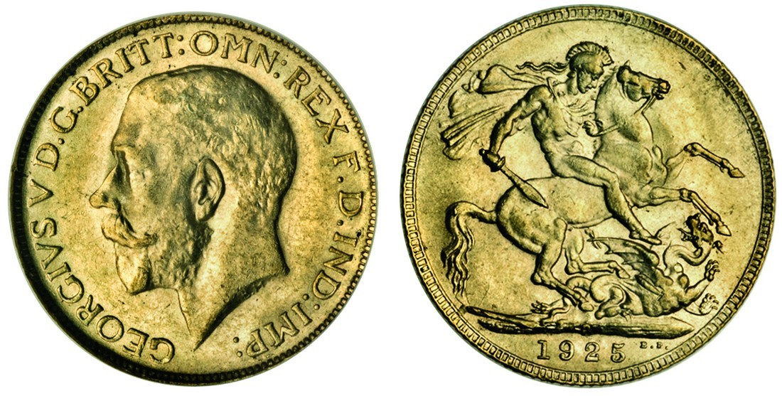(g) George V (1910-36), Sovereign, 1925, Perth, head left, rev. St George and dragon (Marsh 264; S.4001), in CGS UK holder graded ef70