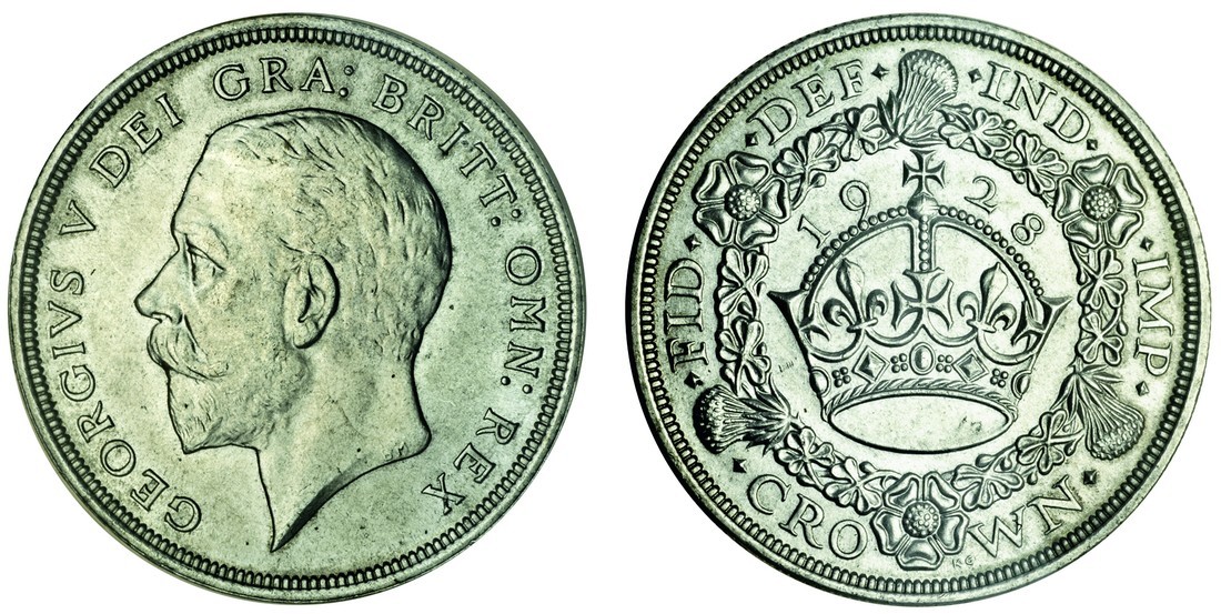 George V (1910-36), wreath Crown, 1928, rev. crown within wreath (ESC 368; S.4036), in CGS UK holder graded UNC82