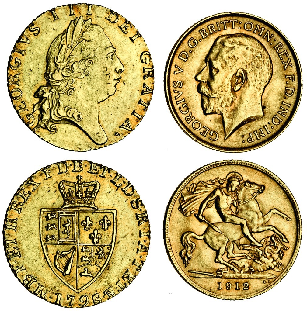 George III, Guinea, 1798, fifth laureate head, George V, Half-Sovereign, 1912 (S.3729, 4006), about extremely fine and extremely fine (2)