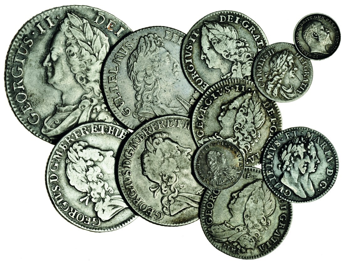 Miscellaneous silver coins (11), Halfcrown, 1745 lima, Shillings (3), 1697 C, 1723 SSC, 1723 roses and plumes, Sixpences (3), 1746 lima (2), 1753, Threepence, 1689, Twopence, 1671, and Pennies (2), 1800, 1905, fine to very fine (11)