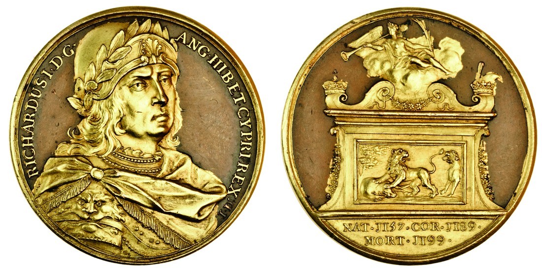 Richard II, damascened bronze medal 1731, by Jean Dassier, helmeted and cuirassed bust three-quarters right, rev. Fame above a monument, 41mm. (E.6; MI, i,3), extremely fine, rare