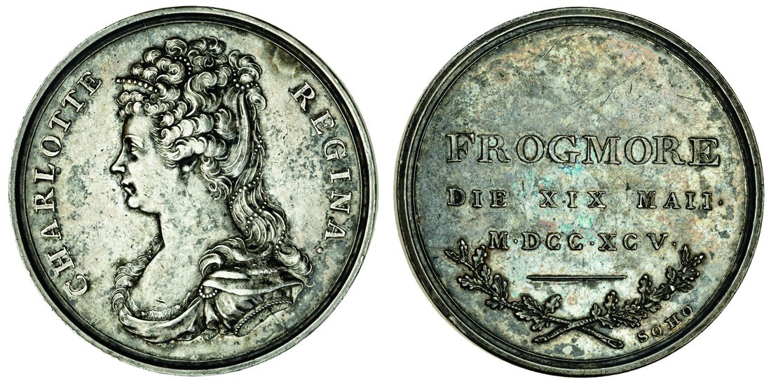 George III, Brithday of Queen Charlotte, 1795, silver medal by C. H. Küchler, bust left, rev. frogmore die xix maii mdccxcv above branches of oak, soho below, 35mm. (BHM 389; E.864; Pollard 10), good very fine, scarce