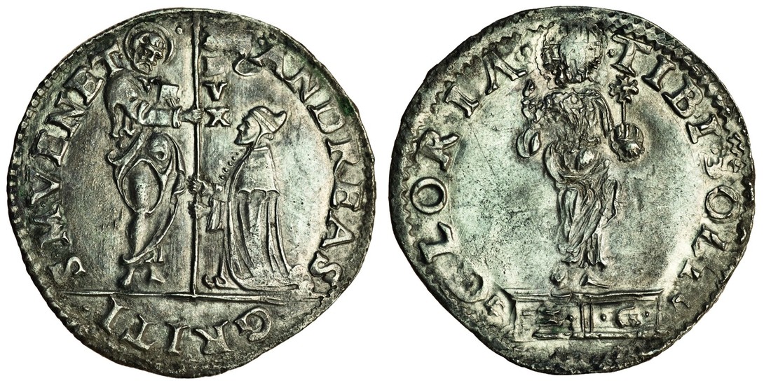 Italy, Venice, Andreas Griti (1523-38), AR Mocenigo, 6.38g, St Mark standing, presenting banner to kneeling Doge, rev. Christ standing, holding orb (Paol. 5), good very fine