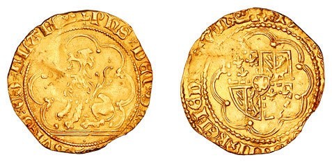 Low Countries, Flanders, Philip the Good, Third Lion d'or, 1.12g, Mechelen, lion seated under an ornate canopy, rev. Burgundian shield within tressure (Fr.187; Delmonte 491; v G.&H. 5-2), clipped, creased, nearly very fine, rare