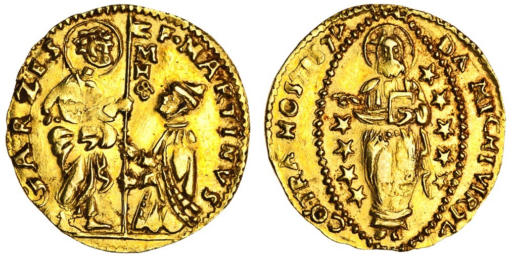 Malta, Martin de Garzes (1595-1601), Zecchino, 3.37g, undated, in imitation of the Venetian Zecchino, Doge kneeling before St Mark, rev. Christ in mandorla (F.9), very fine