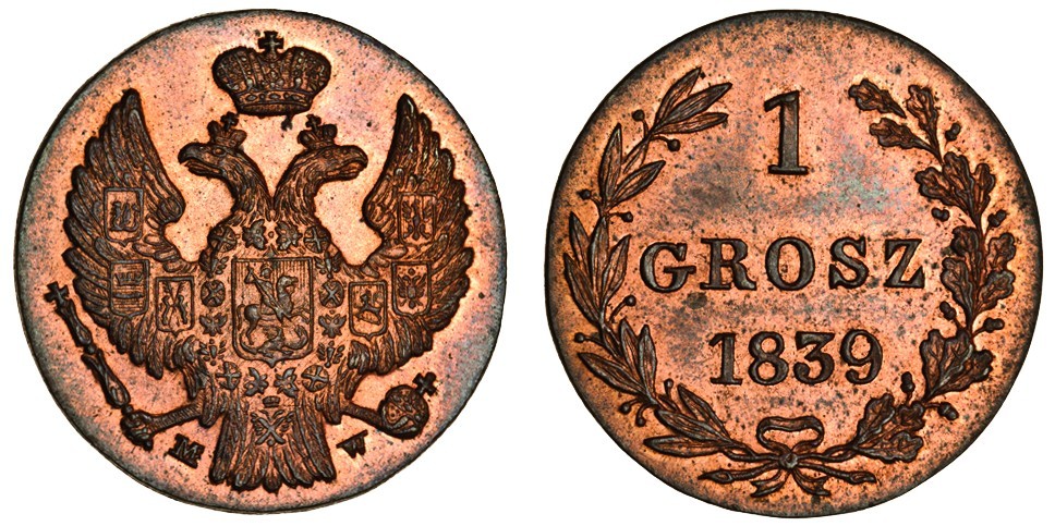Poland, Nicholas I 91835-55), Grosz, 1839, crowned double headed eagle, rev. value in wreath (KM 106), uncirculated with lustre