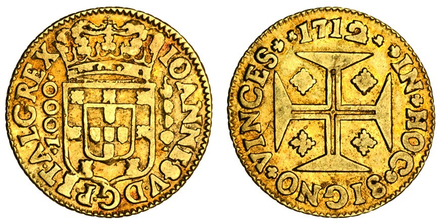 Portugal, João V (1706-50), 1,000-Reis (Quartinho), 1712, crowned shield, rev. cross (F.98; KM 182), very fine