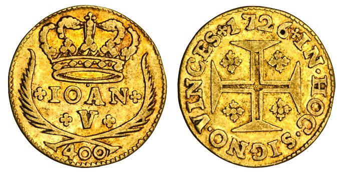 Portugal, João V (1706-50), 400-Reis (Cruzado), 1726, crowned shield, rev. cross (F.100; KM 201), very fine