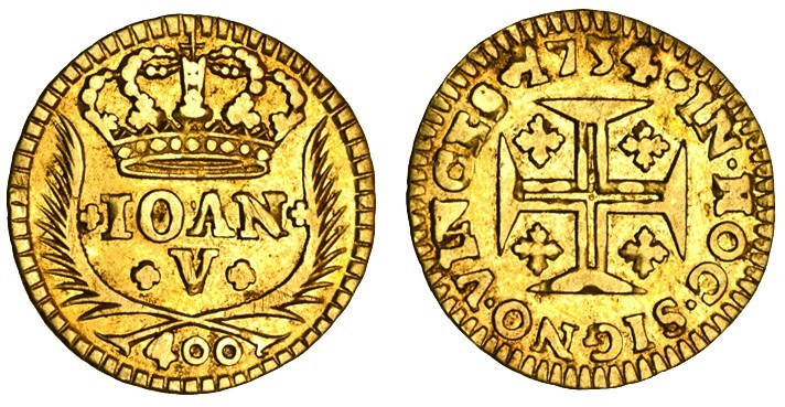 Portugal, João V (1706-50), 400-Reis (Cruzado), 1734, crowned shield, rev. cross (F.100; KM 201), very fine