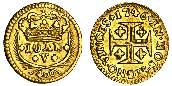 Portugal, João V (1706-50), 400-Reis (Cruzado), 1746, crowned shield, rev. cross (F.100; KM 201), good very fine